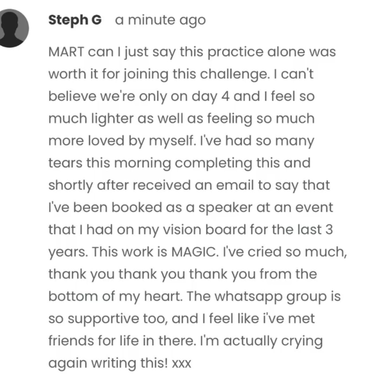 – Lifetime access so you can return to the challenge whenever you need to reconnect with yourself